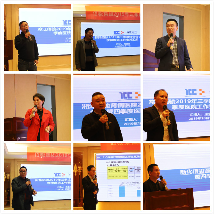 会议最后,集团下属十家医院分别就三季度经营情况进行了具体汇报工作,并对经营过程中存在的问题进行了总结与分析,例如:冷水江佰骏医院“团队建设问题”、娄底泰莱医院“如何控制人力成本、提升管理系统的实用性”等。