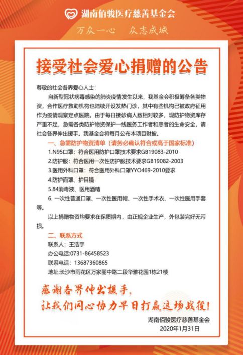 与此同时,为助力一线医护人员抗击疫情,湖南佰骏医疗慈善基金会一直在行动,2020年2月1日,方盛制药通过湖南佰骏医疗慈善基金会捐赠医用酒精1万瓶驰援抗疫一线,为佰骏医疗集团积极做好新型冠状病毒感染的肺炎防控工作助力。