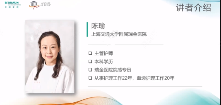 本次培训重点关注血液净化患者的护理及院感防控等热点话题,邀请上海交通大学医学院附属瑞金医院吴霞珺护士长,中南大学湘雅二医院血液净化中心周琳护士长,复旦大学附属华山医院护理部护士长、血液净化室护士长黄碧红副主任护师,贝朗爱敦全国临床经理李玄龙,贝朗公司水处理产品技术专员邓超,上海交通大学医学院附属瑞金医院院感专员陈瑜主管护师等血液净化领域专家、大咖带来了精彩绝伦的专题授课。
