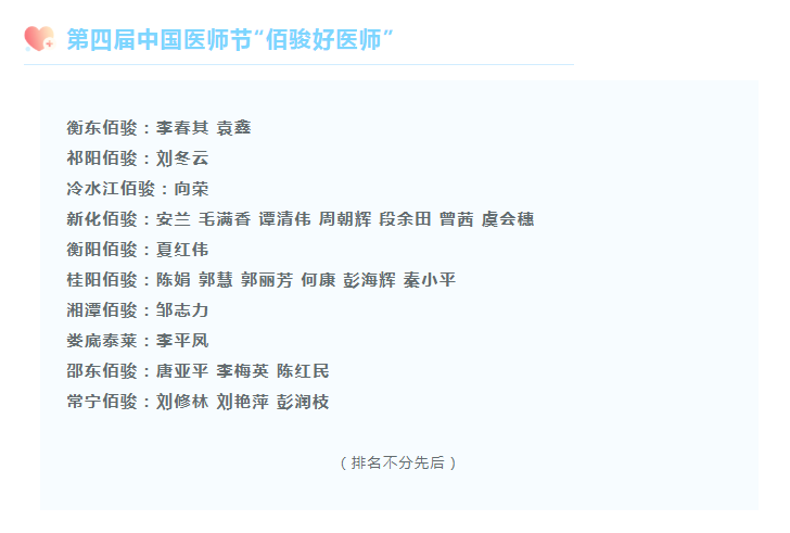 为庆祝第四届?“中国医师节”,弘扬“敬佑生命、救死扶伤、甘于奉献、大爱无疆”的精神,充分激发集团旗下医院广大医师自尊自爱、热爱本职、忠于职守、崇尚医德、钻研医术的工作热情,表彰奖励在工作岗位上兢兢业业、为医院做出突出贡献的先进人物,不断提升佰骏医疗集团医师团队的凝聚力、战斗力,经各旗下医院认真评选、推荐,佰骏医疗集团总部审核,决定授予旗下医院26位医师“佰骏好医师”荣誉称号。