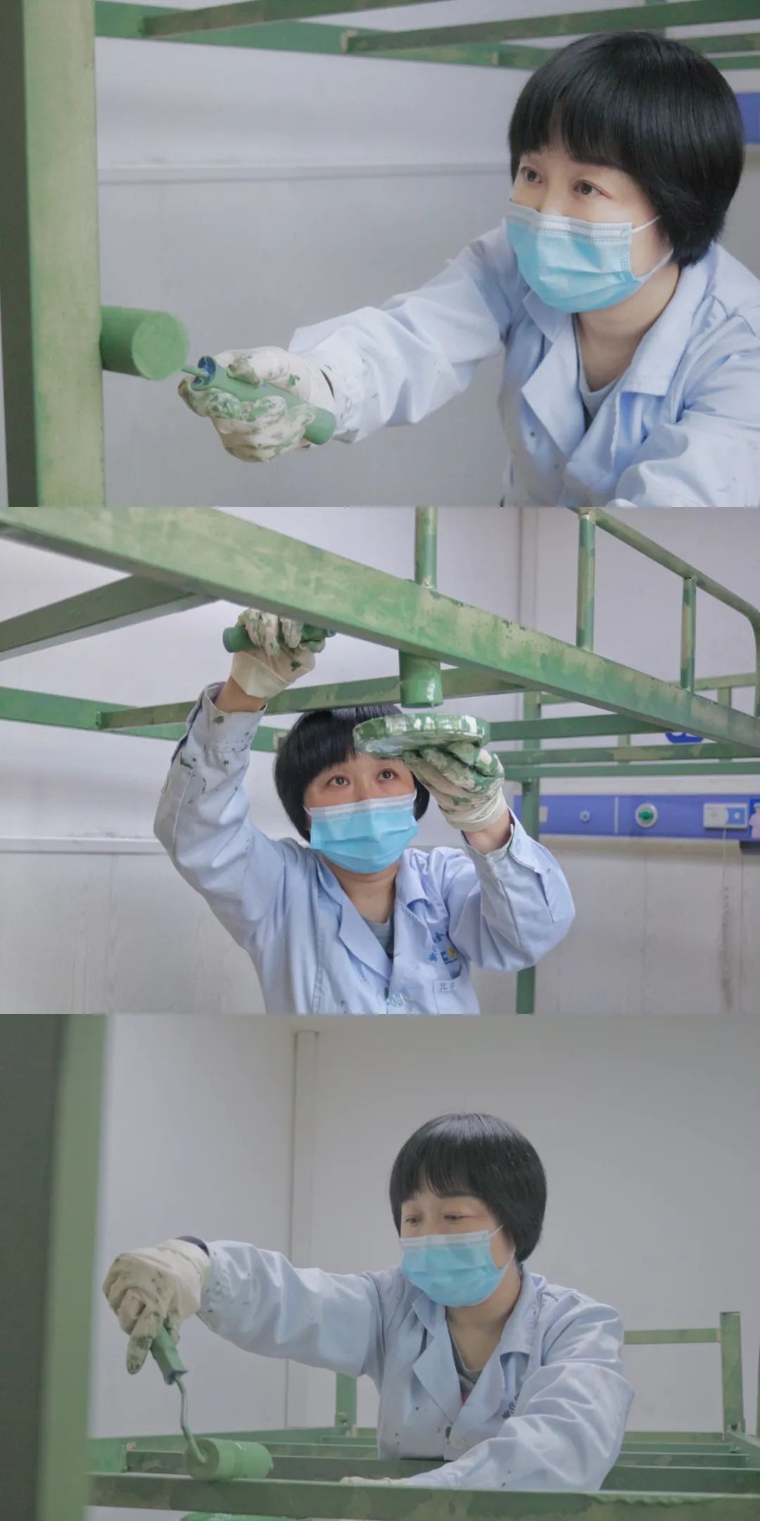 医院推行“6S”管理模式,以儿科为首,优先打造“6S”示范科室。图为儿科护士长马莲花正在为值班室生锈的床刷漆。