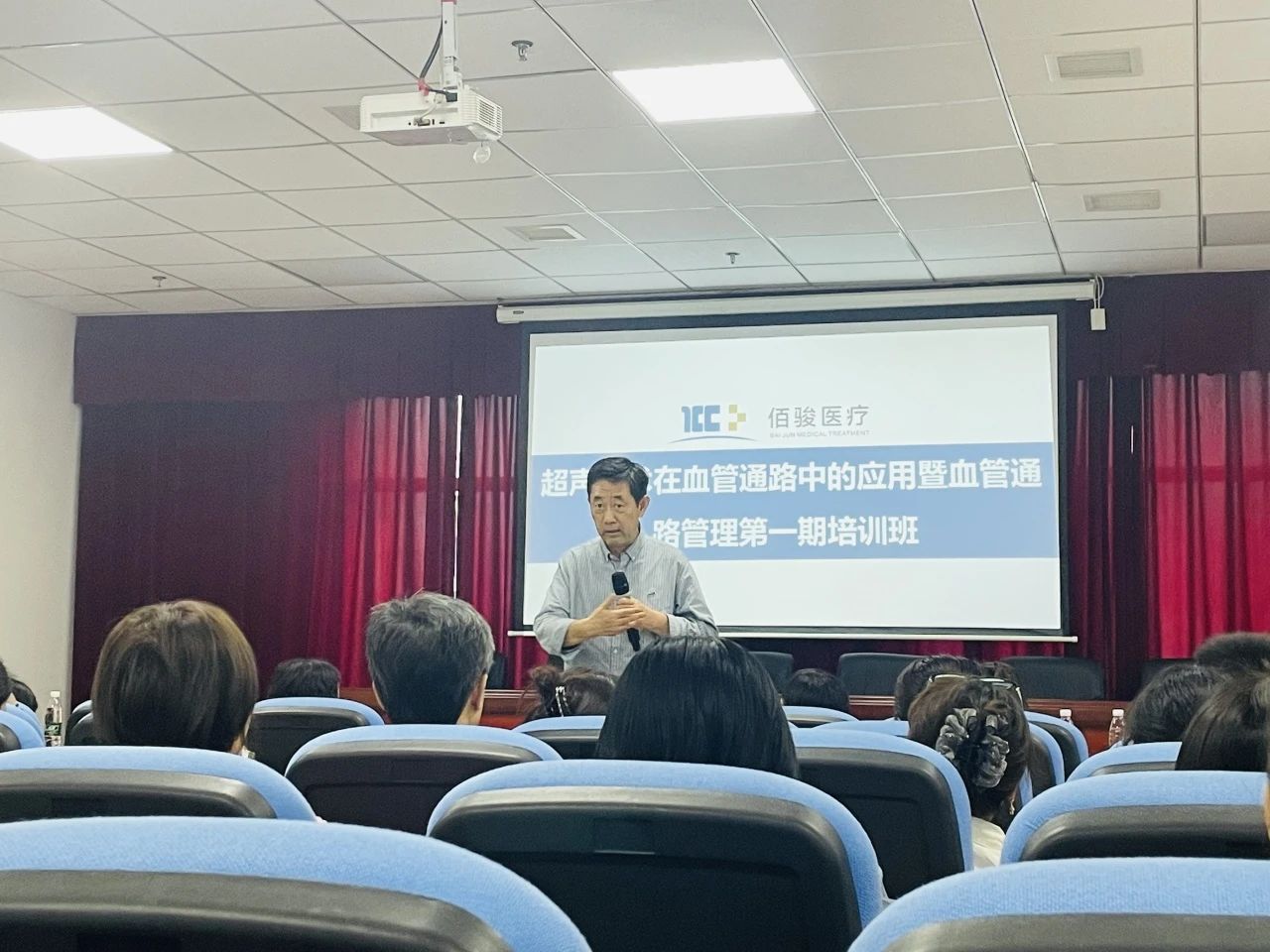 18日邀请湖南省人民医院超声专家王莉萍教授及集团内部相关专业讲师,针对超声技术在血管通路中应用进行了一系列的理论培训。